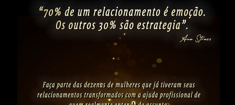 Referência em consultoria amorosa especializada para mulheres, Ana é autora de dois livros sobre relacionamentos e estuda o tema há mais de 10 anos, tendo realizado dezenas de atendimentos individuais.